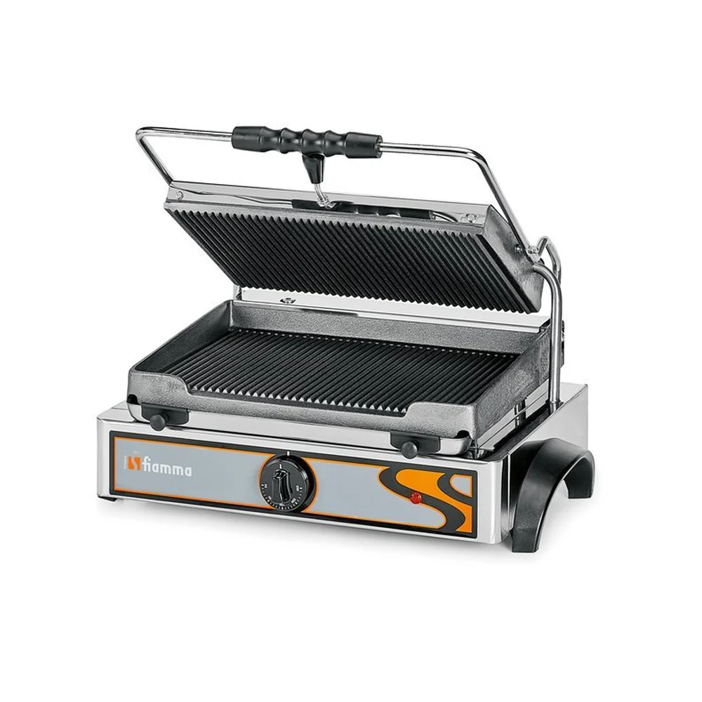 Desktop electric contact grill with electronic control, touch panel interface, and Teflon mat for precise and efficient grilling.