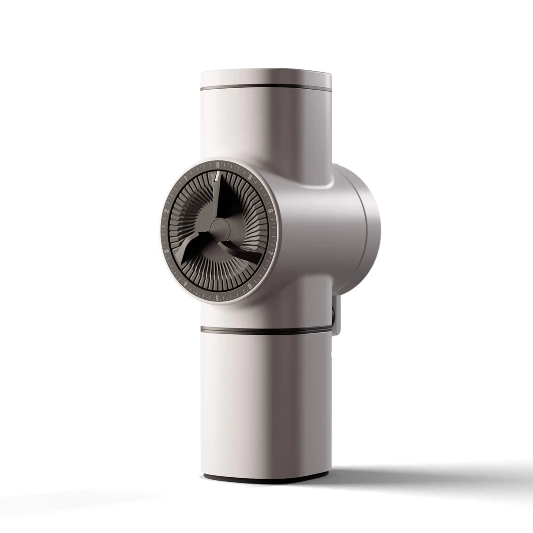 Manual coffee grinder with flat burrs, precise adjustment, and premium design.