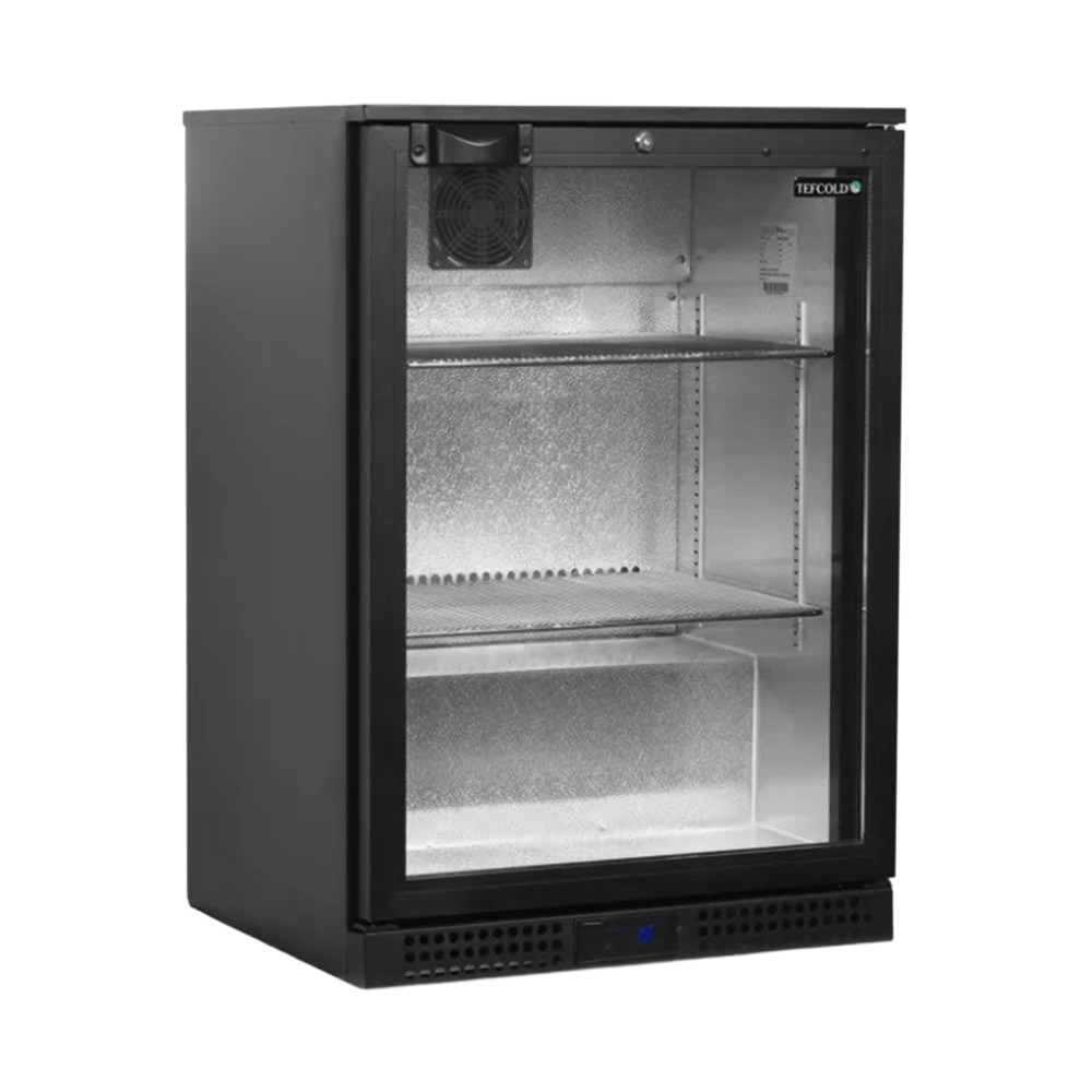The TEFCOLD BA16H is a sleek and compact back bar bottle cooler designed for bars, cafes, restaurants, and hospitality venues where space-saving, visibility, and reliable refrigeration are essential. It features a single hinged double-glazed glass door for clear product display and enhanced energy efficiency. The internal LED lighting provides excellent visibility, while the fan-assisted cooling ensures even temperature distribution throughout. With adjustable chrome shelves, a lockable door, and a modern black exterior, this unit offers both security and style. Its compact size makes it perfect for undercounter installation, allowing for efficient use of space without sacrificing capacity.